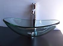- 5/8" Thick Natural Clear Boat Shape Glass Vessel Sink and Chrome Finish Vessel Sink faucet